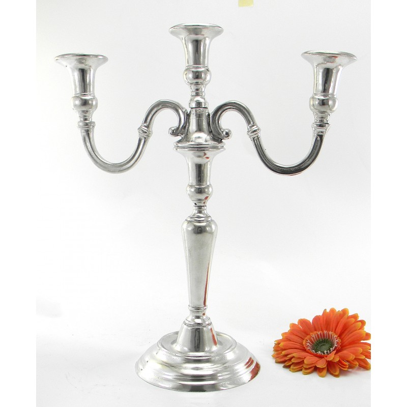 This three‑flame pewter candelabrum is handmade with great craftsmanship, following the Cavagnini tradition of pewter working Made in Italy.