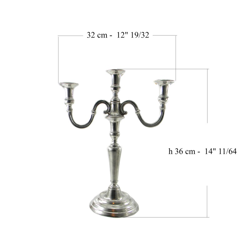 Meta description: Three‑light pewter candelabrum, h 36 cm, handcrafted Cavagnini Made in Italy, ideal as an elegant centrepiece or home décor item.